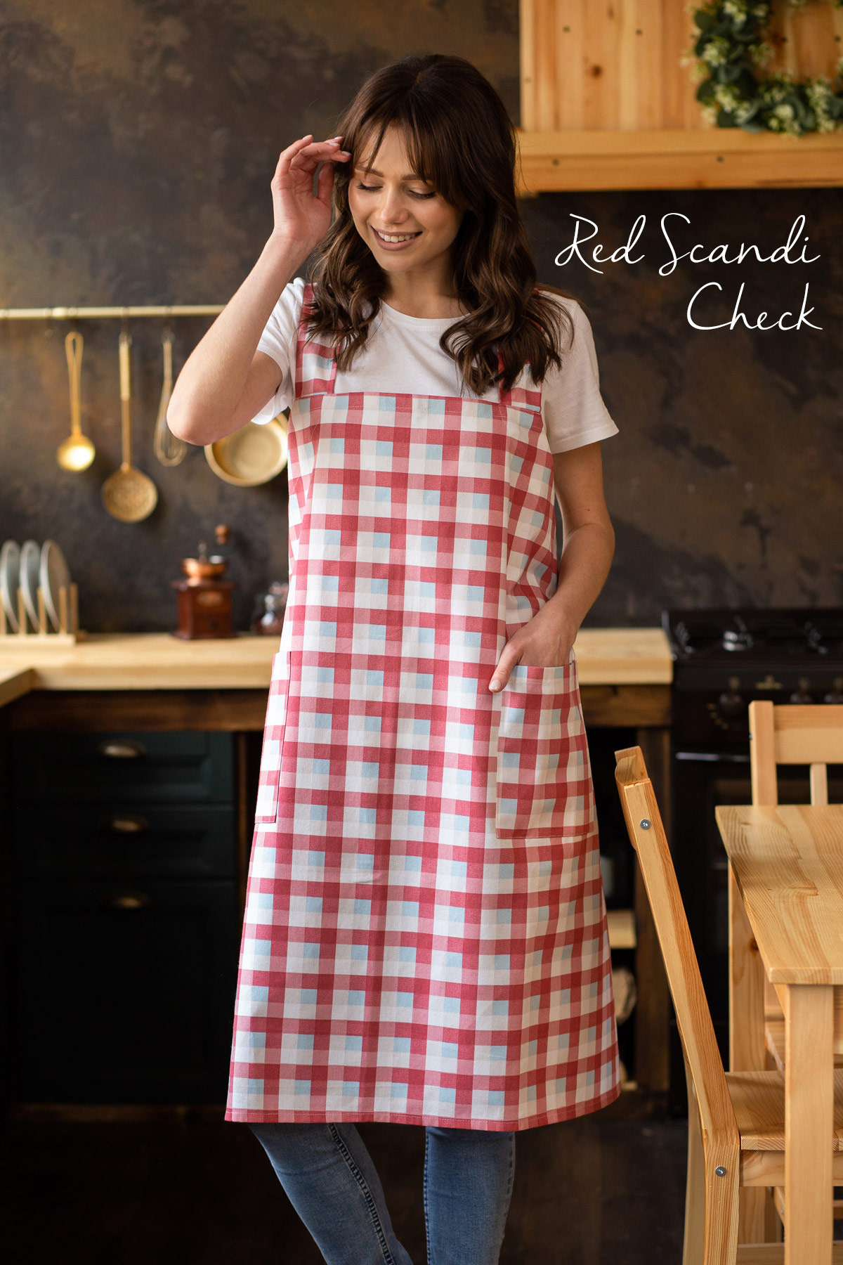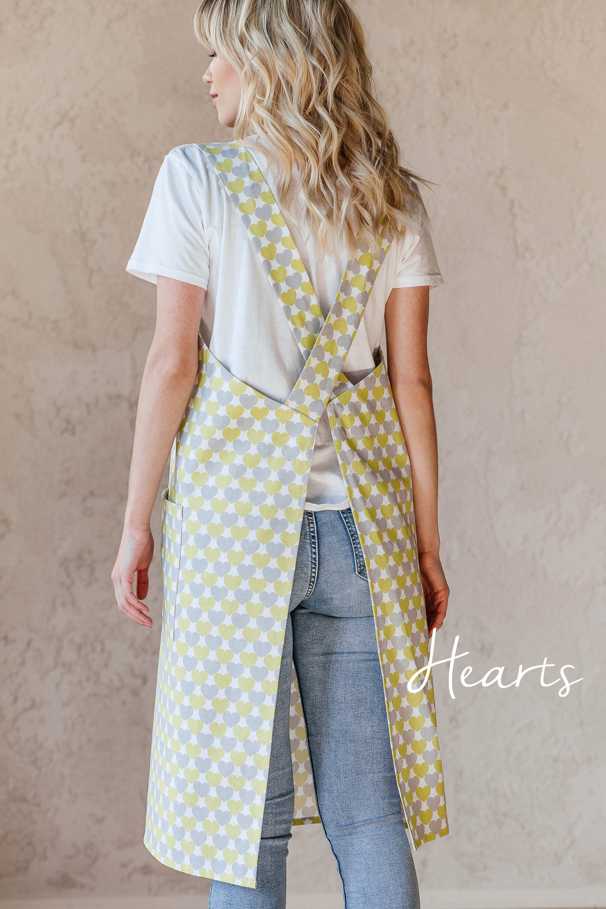 0Our best-selling pinafore apron is now available in durable, breathable cotton with four new, stylish prints: hearts, checks, florals, polka dots and strawberries.
